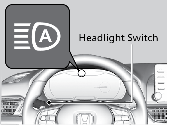 Make sure the headlight lever is in the low beam position with the switch rotated to the AUTO position. The auto high beam system indicator comes on.