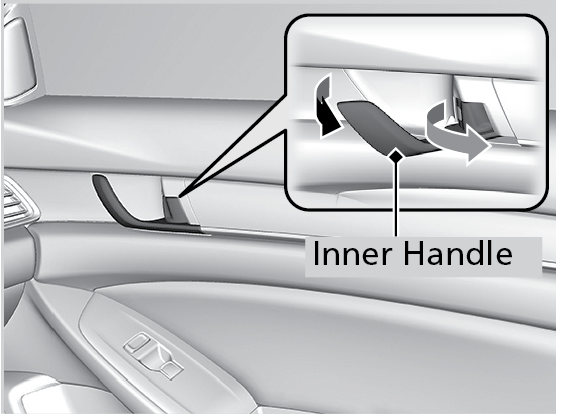 Pull the front door inner handle. The door unlocks and opens in one motion. Unlocking and opening the driver’s door from the inner handle unlocks all other doors