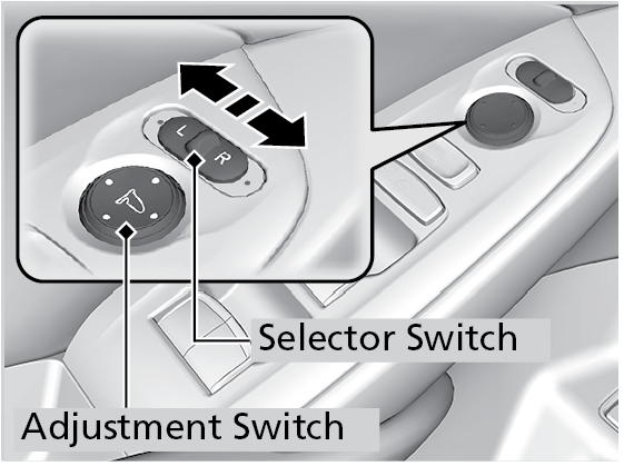 Mirror position adjustment switch: Press the switch left, right, up, or down to move the mirror.