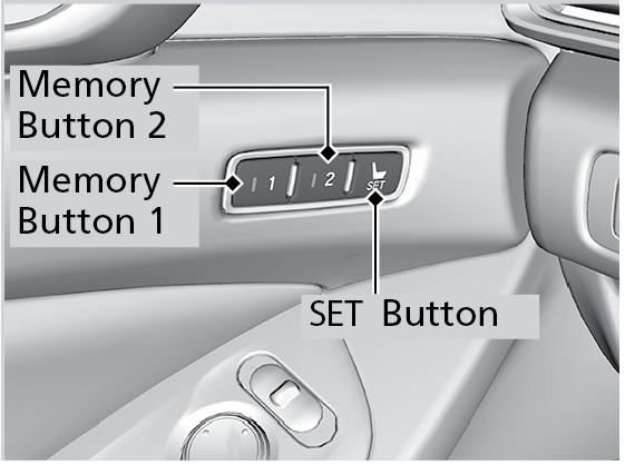 - Press and hold memory button 1 or 2 within 5 seconds of pressing the SET button.