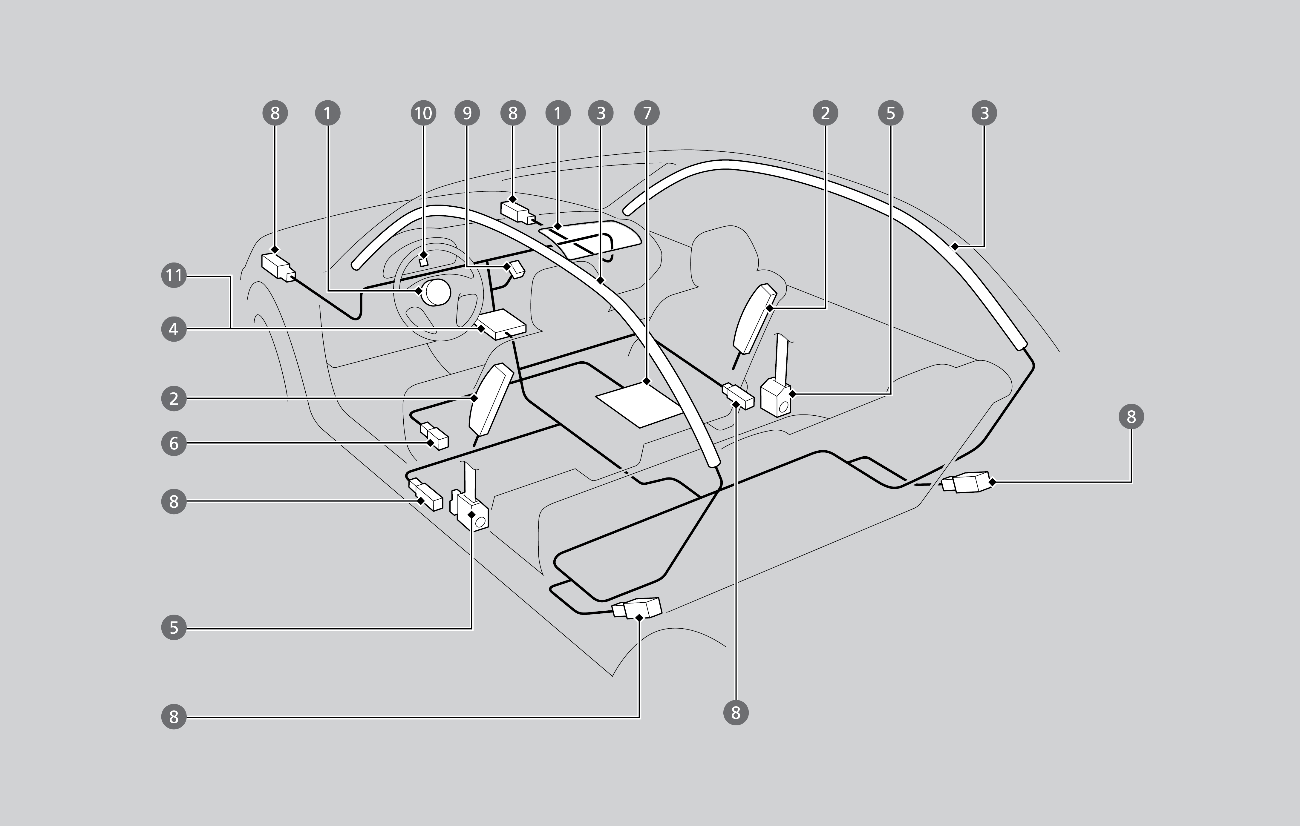 8. Impact sensors that can detect a moderate-to-severe front or side impact.