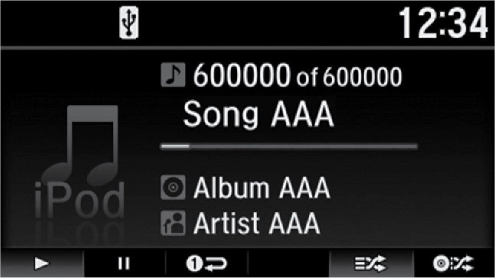 - Press the selector knob to display the iPod music list.