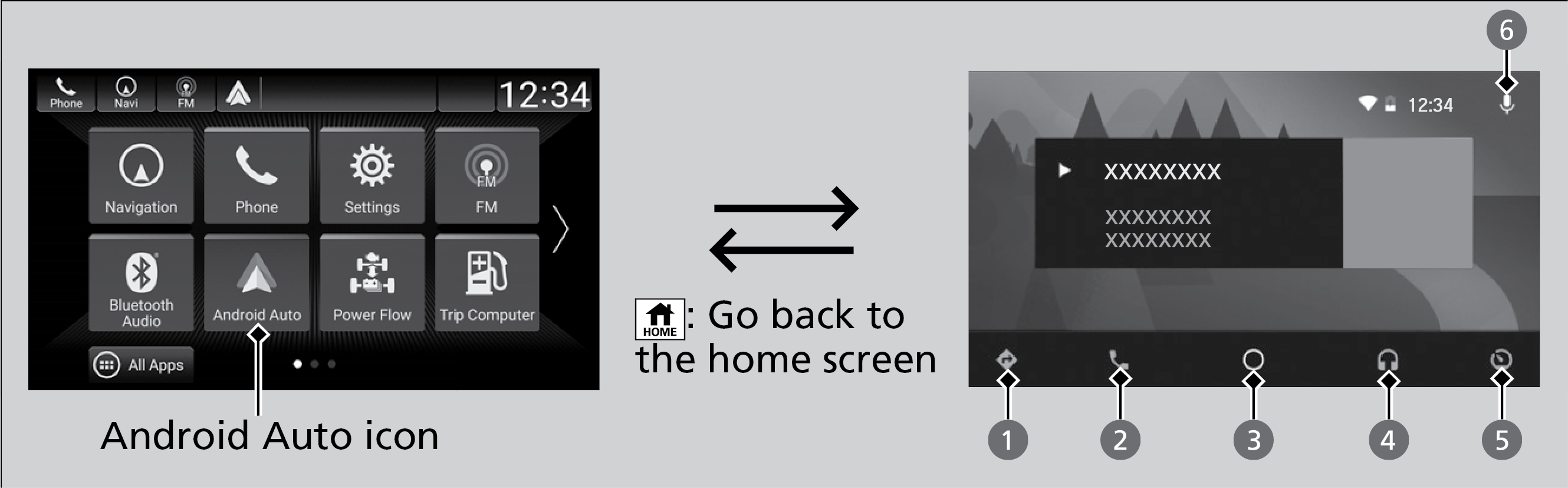 Android Auto™, you can use the audio/information screen to access the Phone, Google Maps (Navigation), Google Play Music, and Google Now functions. When you first use