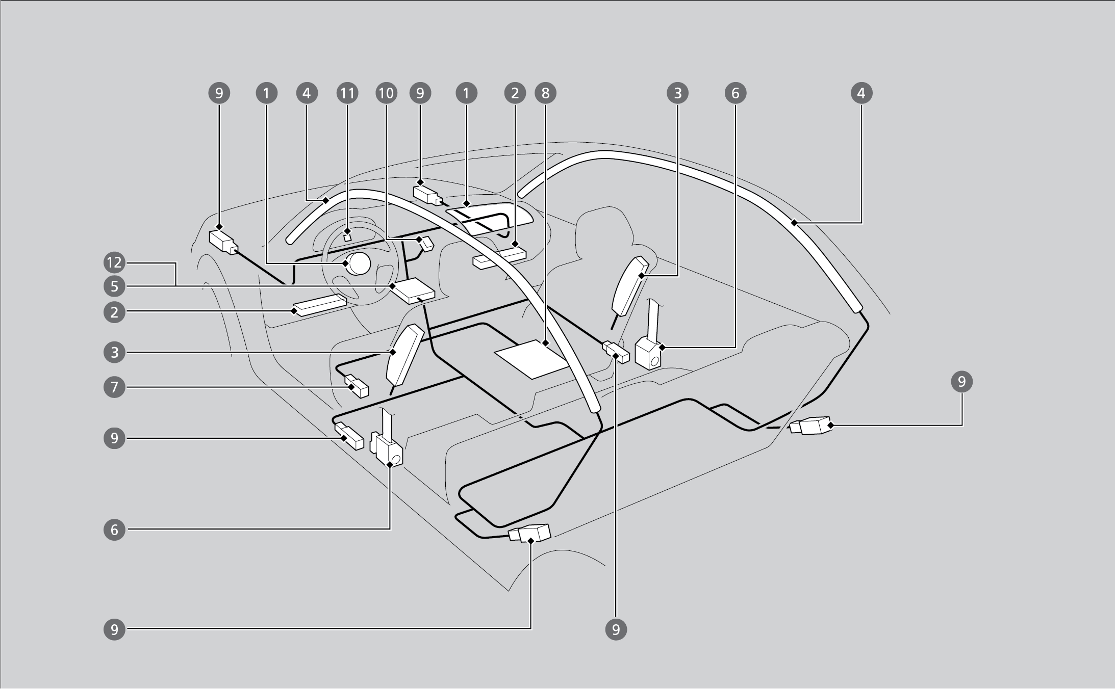 9. Impact sensors that can detect a moderate-to-severe front or side impact.