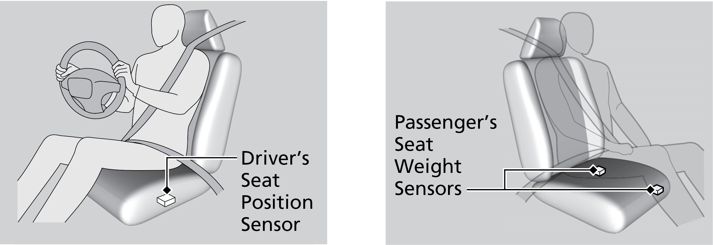 The driver's advanced front airbag system includes a seat position sensor. Based on information from this sensor and the severity of the impact, the advanced airbag system determines the optimal deployment of the driver's airbag.