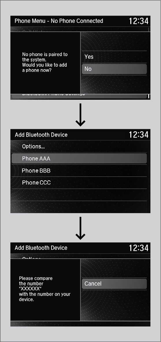 If your phone still does not appear, select Options... to select Device Not Found? and search for Bluetooth® devices using your phone. From your phone, select HandsFreeLink.