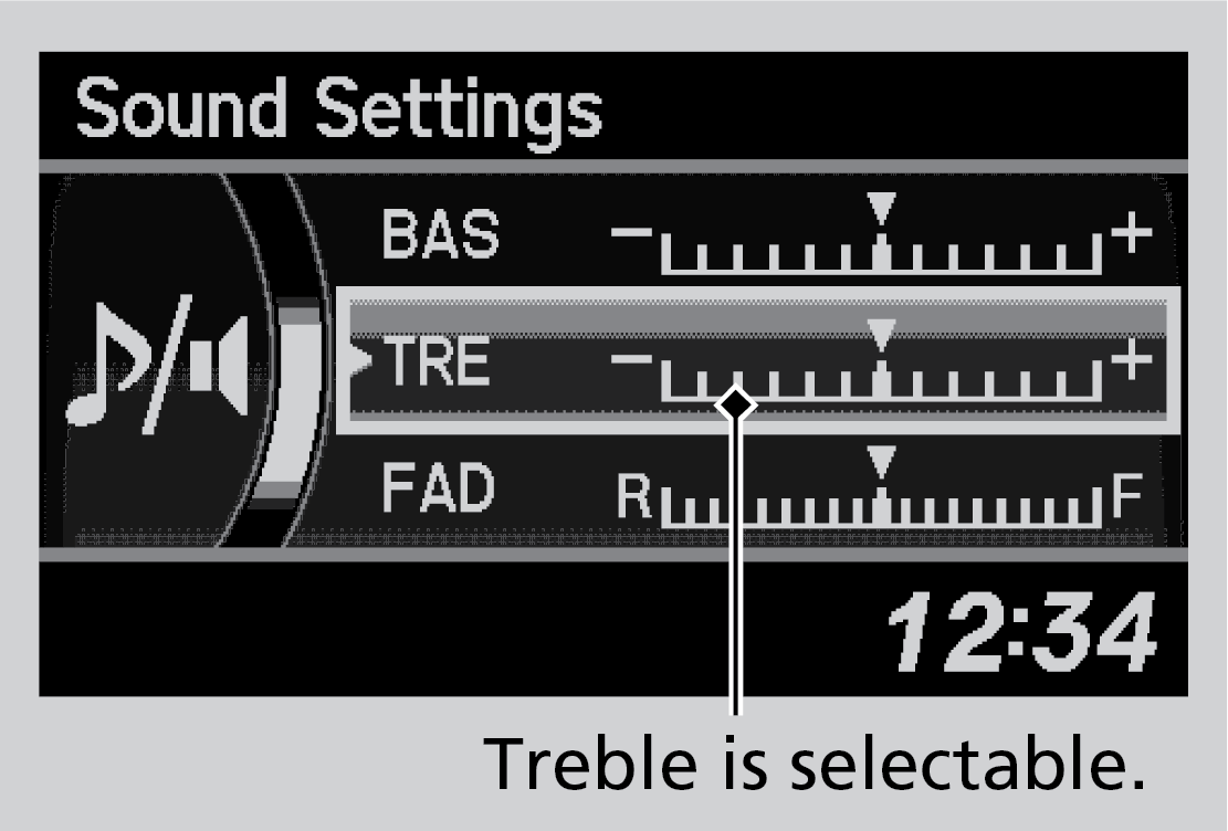 Press the SETUP button, and rotate the selector knob to select Sound Settings. Rotate the selector knob to scroll through the following choices.