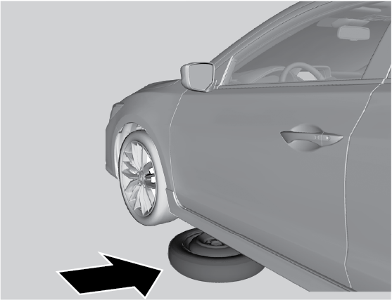 tire (wheel side up) under the vehicle body, near the
