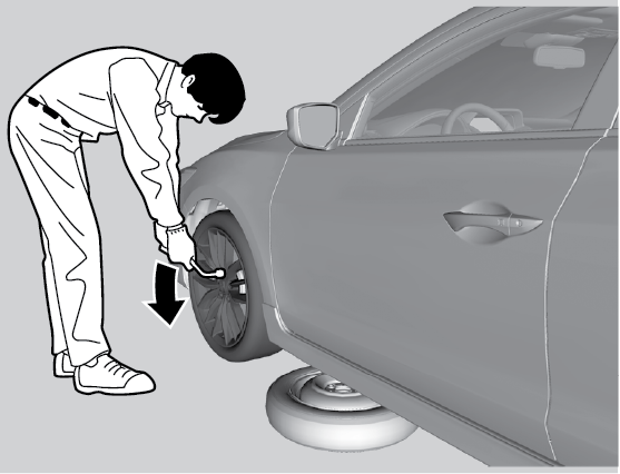Loosen each wheel nut about one turn using the wheel nut wrench.