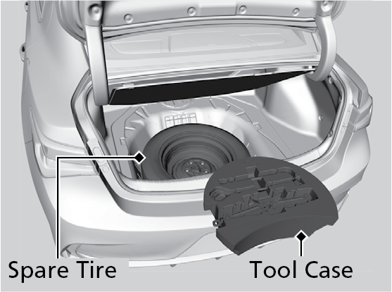 case out. Take the jack and wheel nut wrench out of the tool