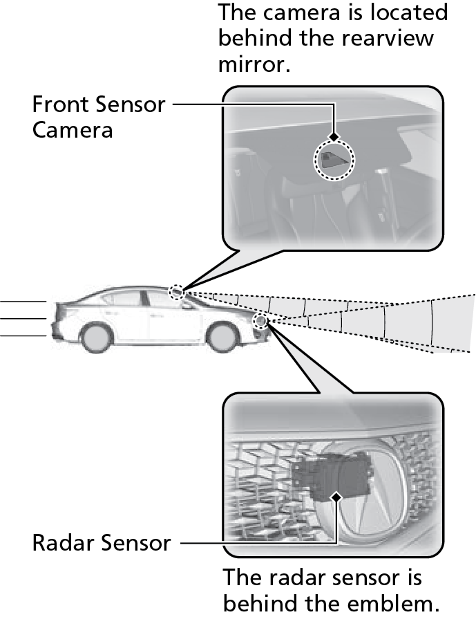 Adaptive Cruise Control (ACC): Helps maintain a constant vehicle speed and a set following interval behind a vehicle detected ahead of yours, without you having to keep your foot on the brake or the accelerator.