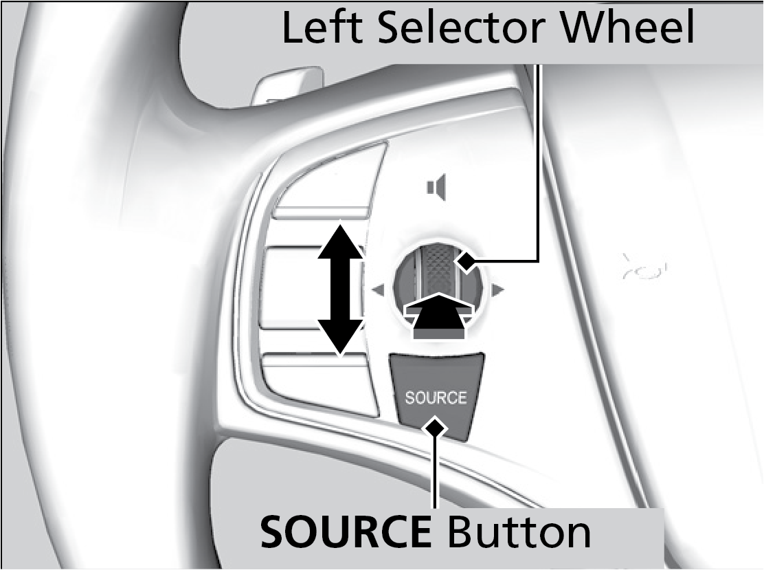 Roll Down: To decrease the volume. Push: To mute. Push again to unmute.