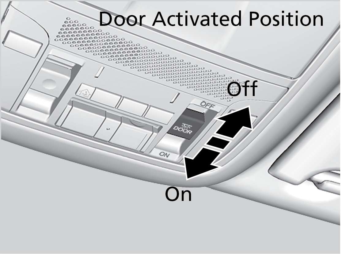 Door-activated position: Interior lights come on when any of the doors are opened, the driver’s door is unlocked, or the vehicle is turned off.