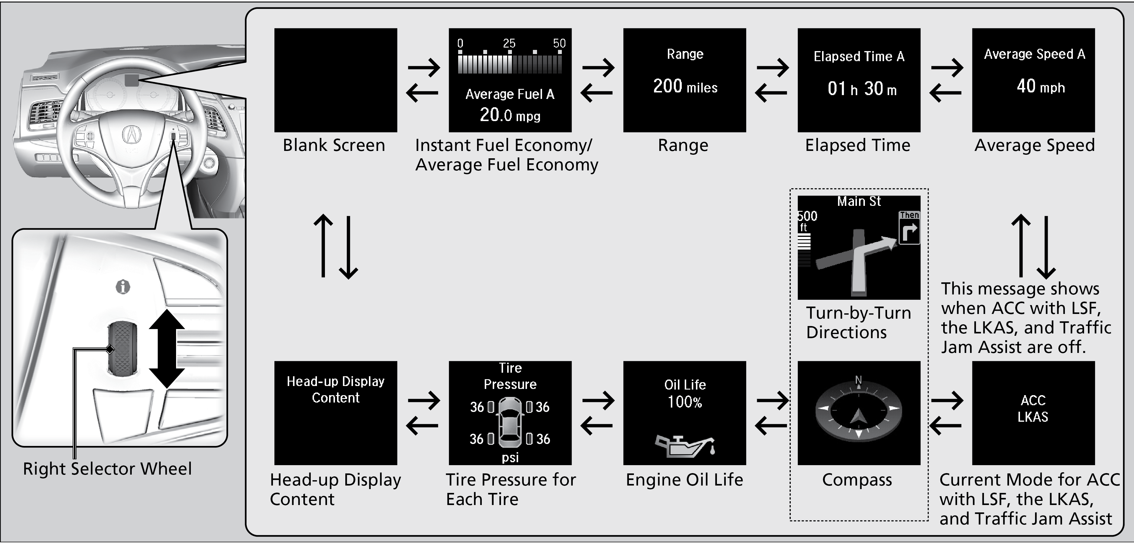 Roll the right selector wheel to change the display.