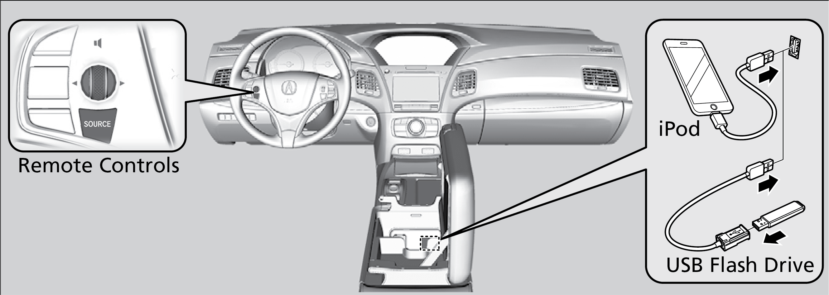 Connect audio devices and operate buttons and displays for the audio system.