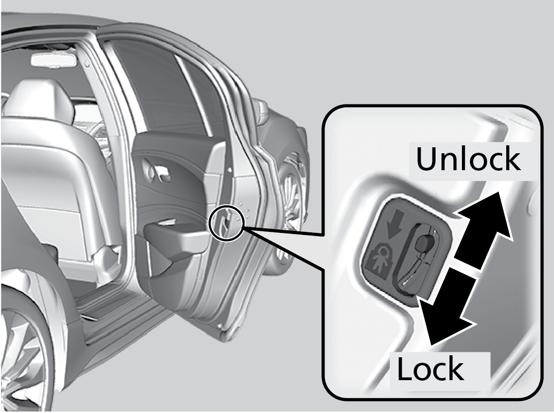 The childproof door locks prevent the rear doors from being opened from the inside regardless of the position of the lock tab.