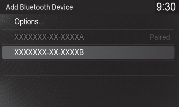 Select Refresh to search again. If your phone still does not appear, select Options, then Device Not Found? and search for HandsFreeLink from your phone.