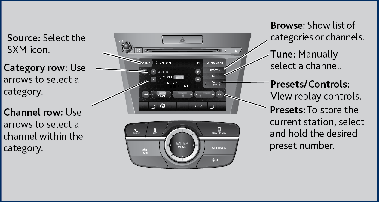 Available on a subscription basis only. For more information or to subscribe, contact your dealer, or visit www.sirius.com/subscribenow (U.S.) or www. sirius.ca/subscribe-now (Canada).
