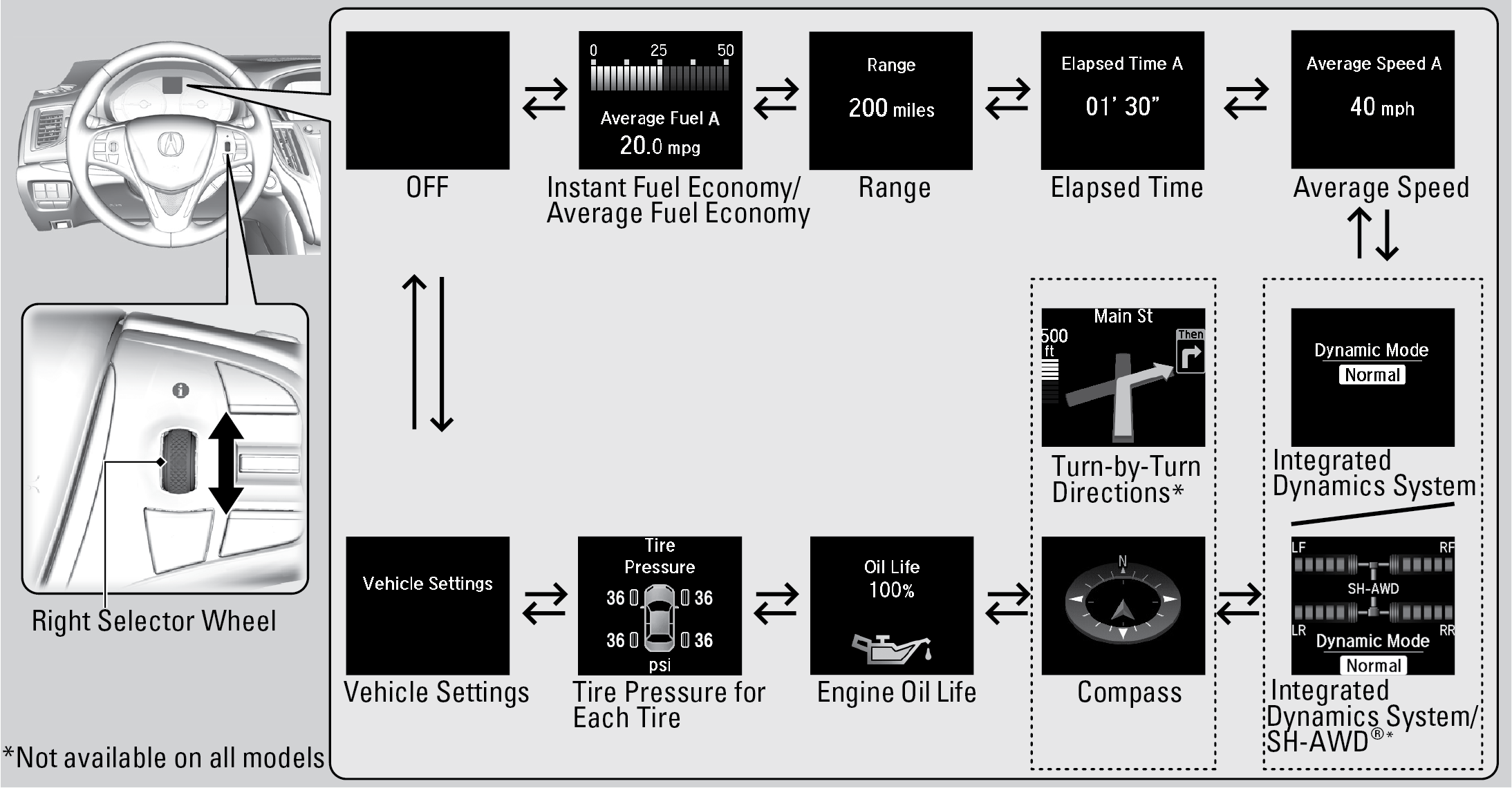 Several displays that provide you with useful information.