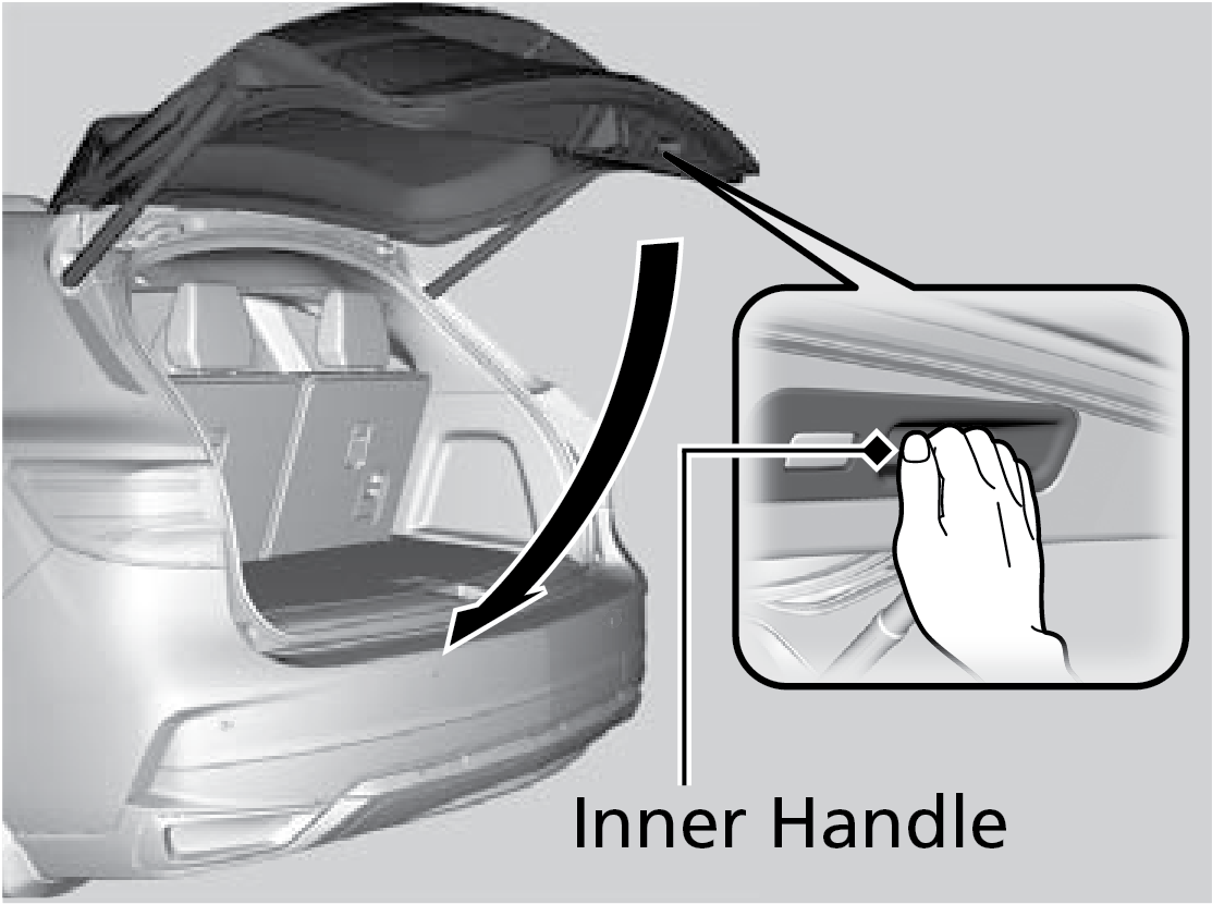 Grab the inner handle and pull the tailgate down. Push it closed from the outside.