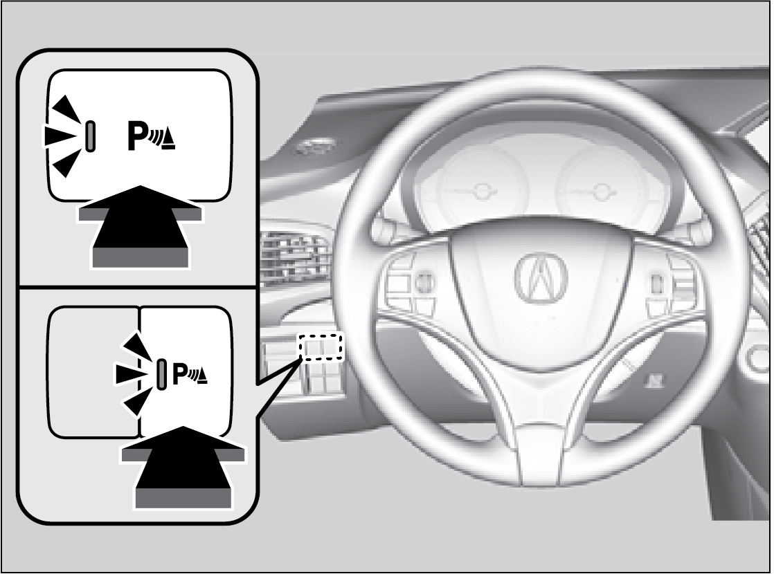 Press the parking sensor button to turn the system on or off. The indicator light appears on the button when the system is on.