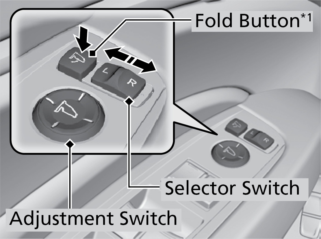 Folding door mirrors*1 button: Press to fold in and out the door mirrors.