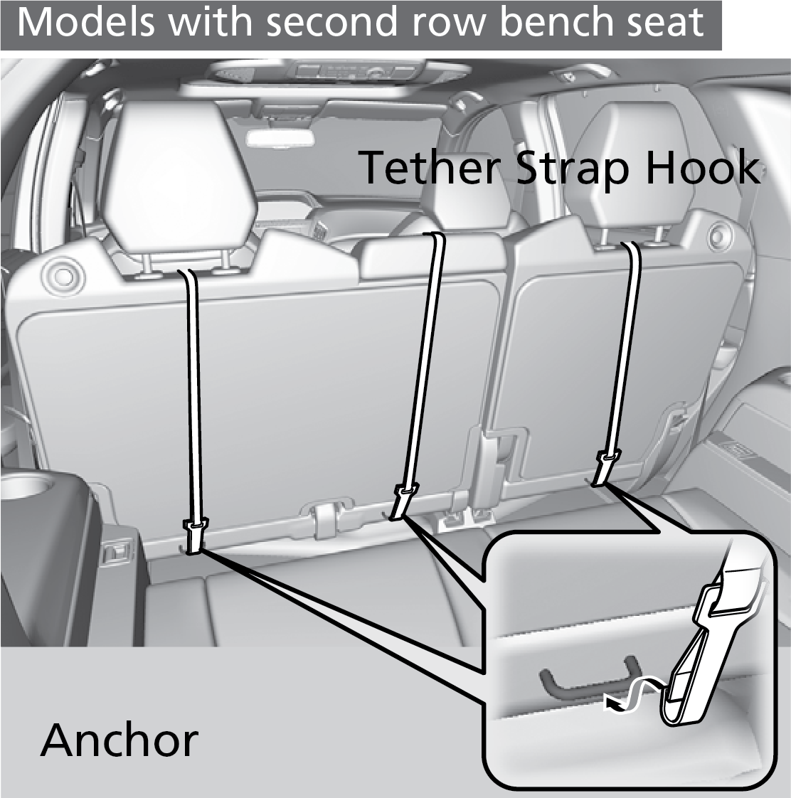 A tether anchorage point is provided behind each rear seating position. If you have a child restraint system that comes with a tether but can be installed with a seat belt, the tether may be used for additional security.