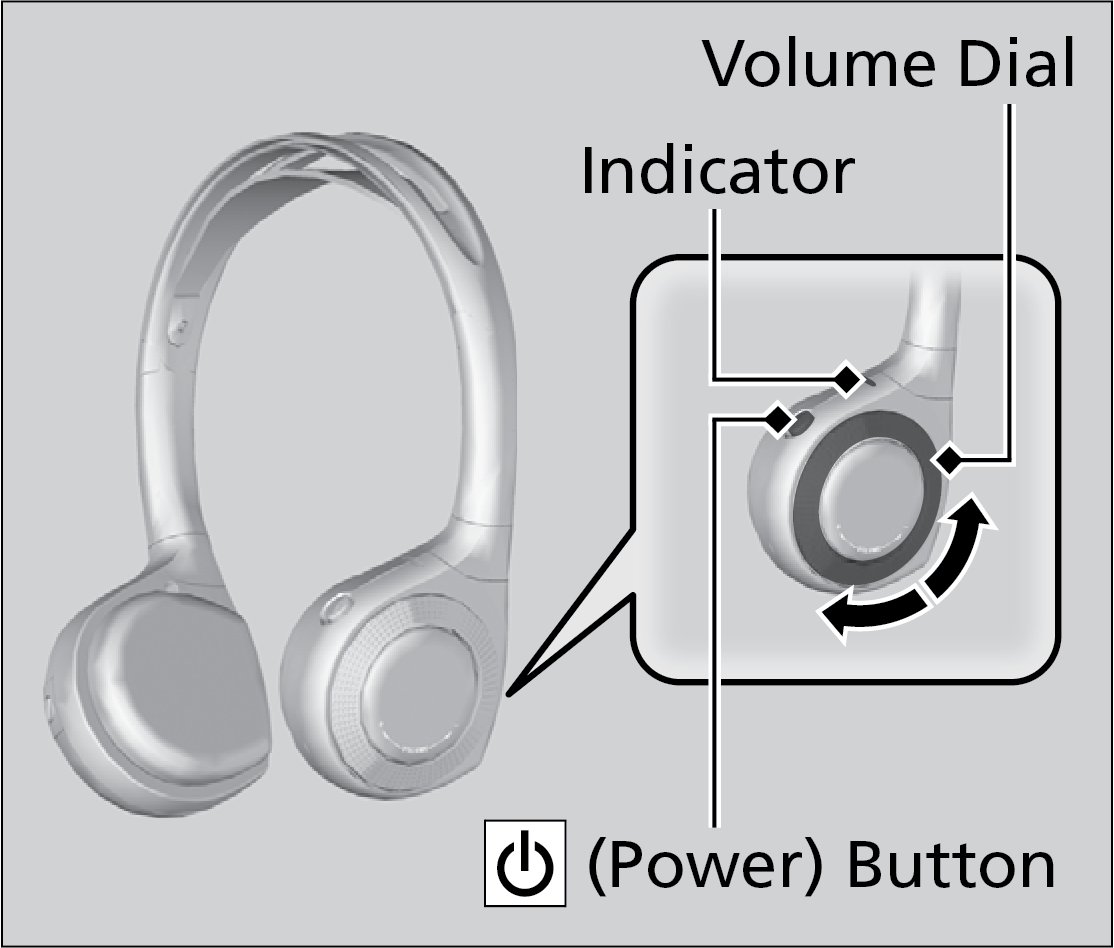 Turn the dial on the right earpiece to adjust the volume.