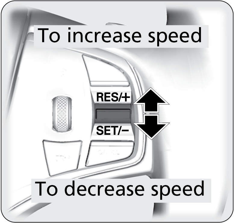 Increase or decrease the vehicle speed using the RES/+/SET/– switch on the steering wheel.