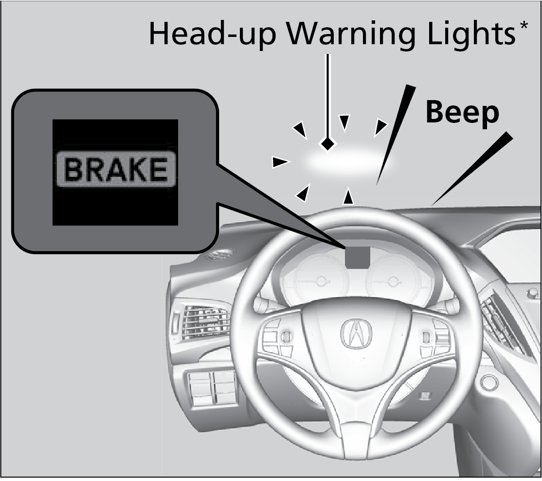 If a vehicle detected ahead of you slows down abruptly, or if another vehicle cuts in front of you, a beep sounds and BRAKE appears on the