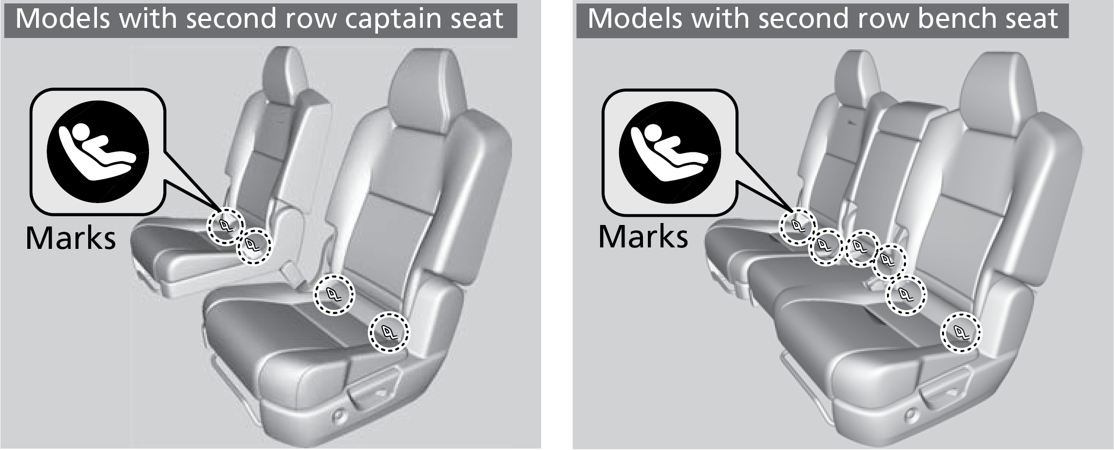 - Locate the anchor marks affixed to the base of the seat cushion.