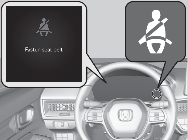 - An unfastened red graphic indicates the seat belt is unfastened and an occupant has been detected.