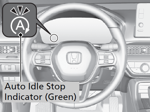 To help maximize fuel economy, the engine automatically stops when the vehicle comes to a stop, depending on environmental and vehicle operating conditions. The indicator (green) comes on at this time.