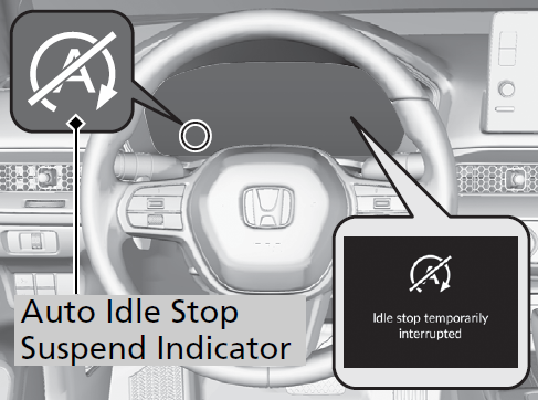 The Auto Idle Stop suspend indicator comes on and a message appears on the gauge when the Auto Idle Stop system cannot be activated.