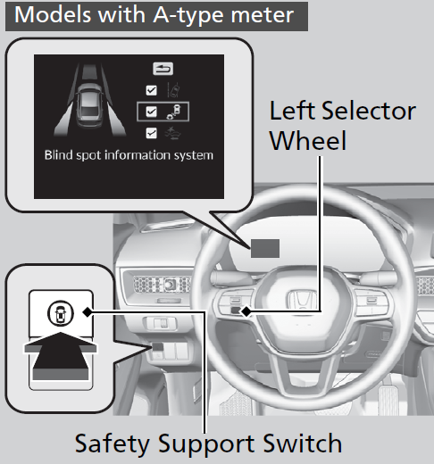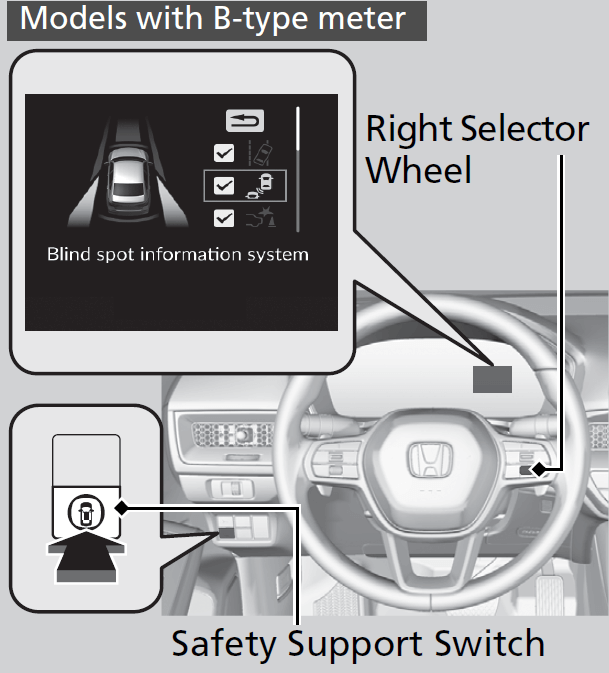 - When you turn the blind spot information system on and off, do the following.