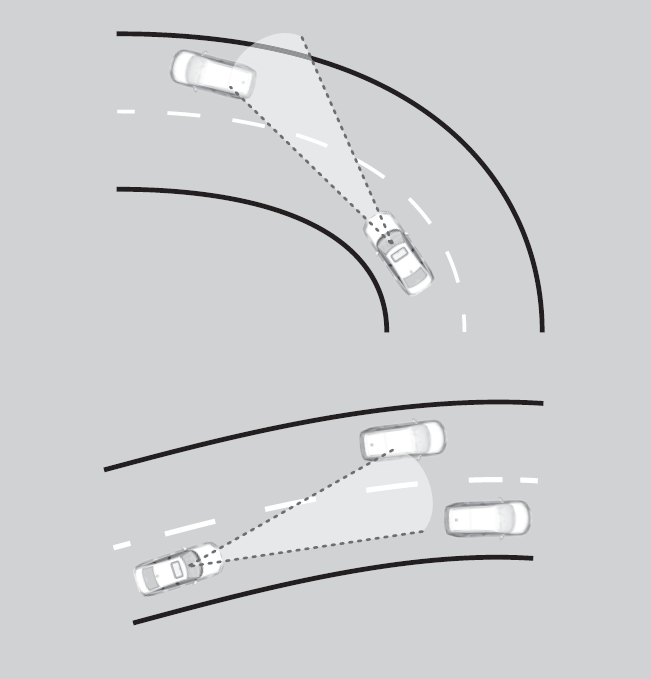 - ACC may temporarily control the interval between your vehicle and the vehicle in adjacent lane or surroundings of your vehicle depending on the road conditions (e.g. curves) or vehicle conditions (e.g. operating the steering wheel or the vehicle location in the lane).