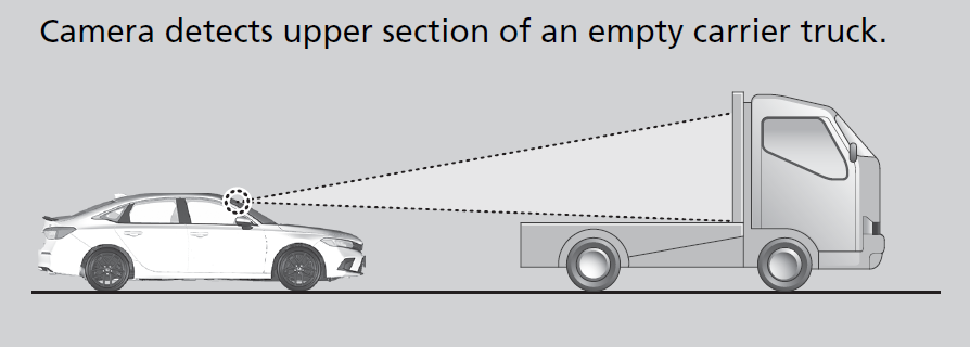 - When the camera cannot correctly identify the shape of the vehicle ahead of you.