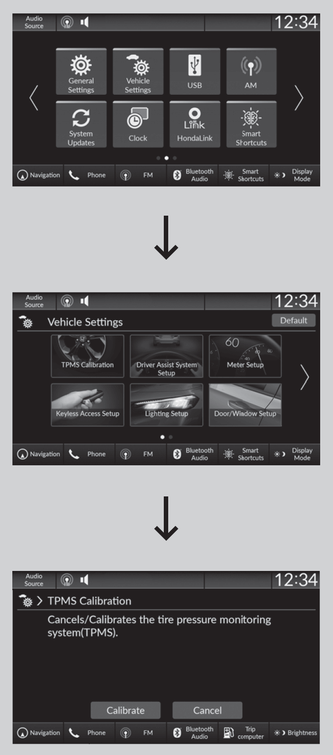 - TPMS calibration appears on the display.