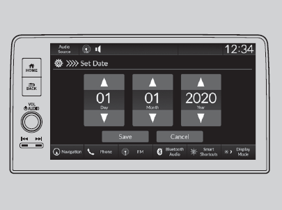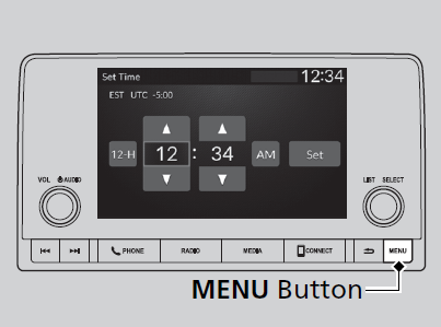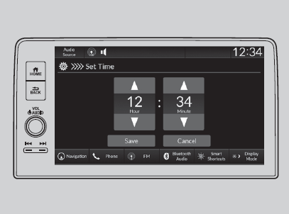 The clock is automatically updated through the audio system.Models with 7-in. Color TouchscreenYou can also select and enter with the LIST / SELECT (List / Selector) knob instead of the touch panel.Models with 9-in. Color TouchscreenYou can also adjust the clock by touching the clock displayed in the header area of the audio/information screen, Clock displayed on the home screen, or