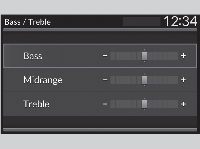 Select an item from the following choices:- Bass / Treble: Bass, Midrange, Treble