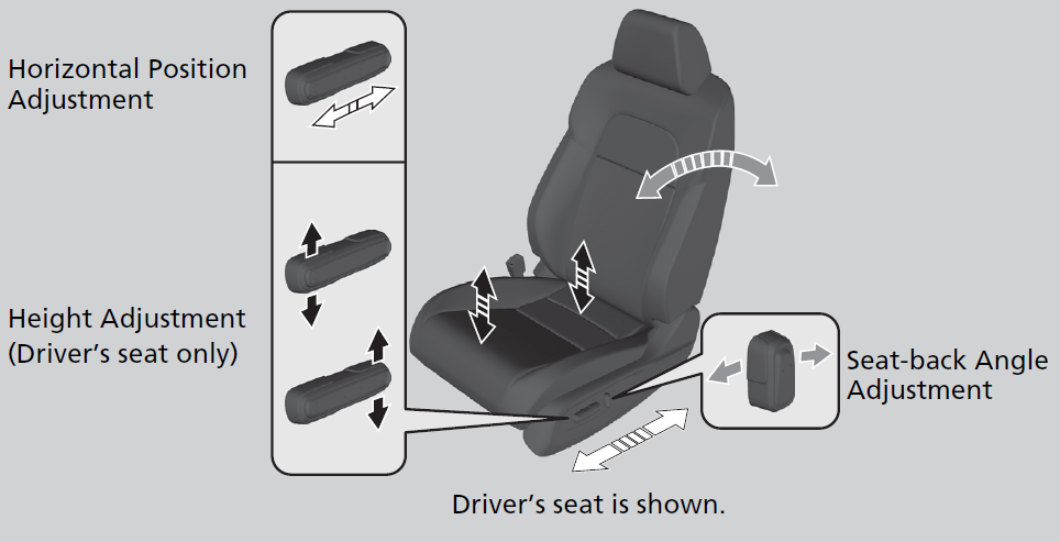 Adjust the driver’s seat-back to a comfortable, upright position, leaving ample space between your chest and the airbag cover in the center of the steering wheel.