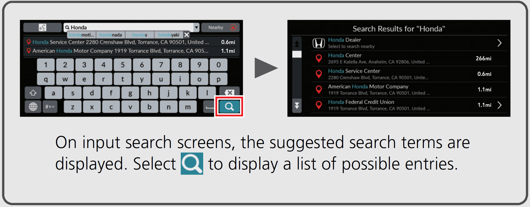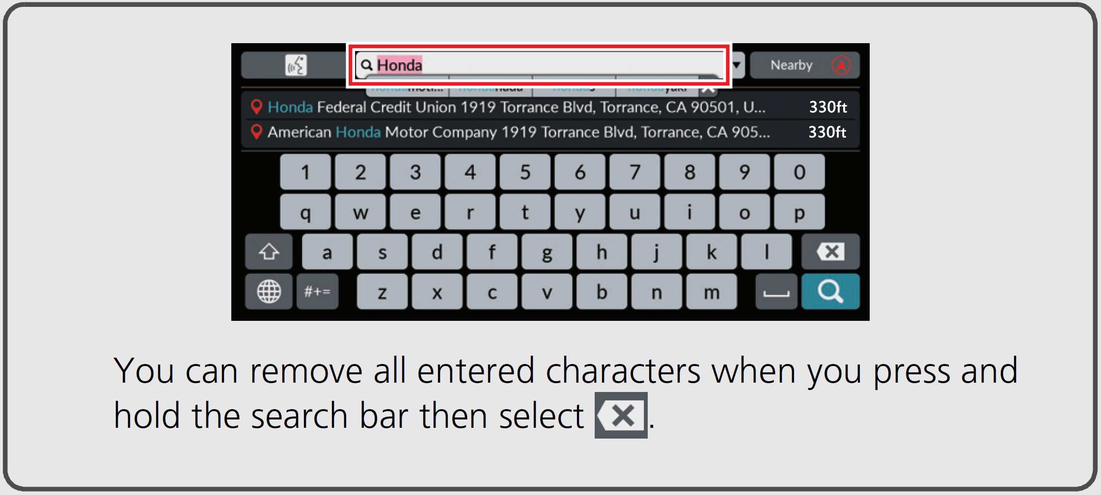You can enter information (e.g., city names, street names, numbers, and symbols) when prompted on the input screen.