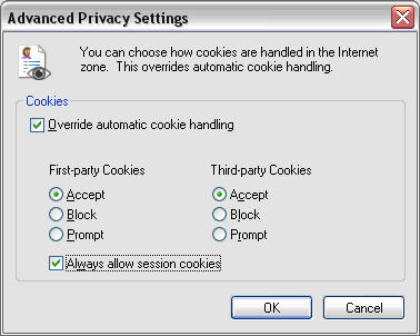 22. Ensure that Accept is selected for First-party Cookies and Third-party Cookies.