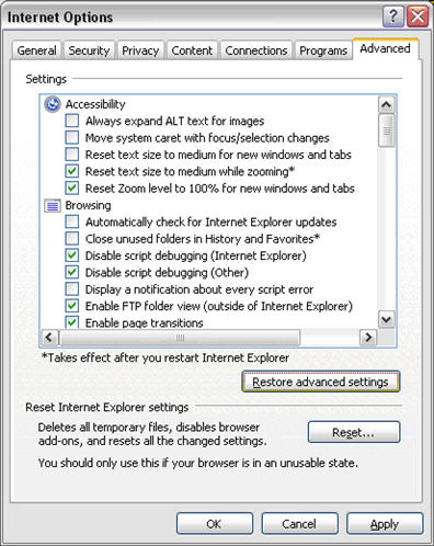 Note: It is recommended that you un-check the Turn on Pop-up Blocker box.