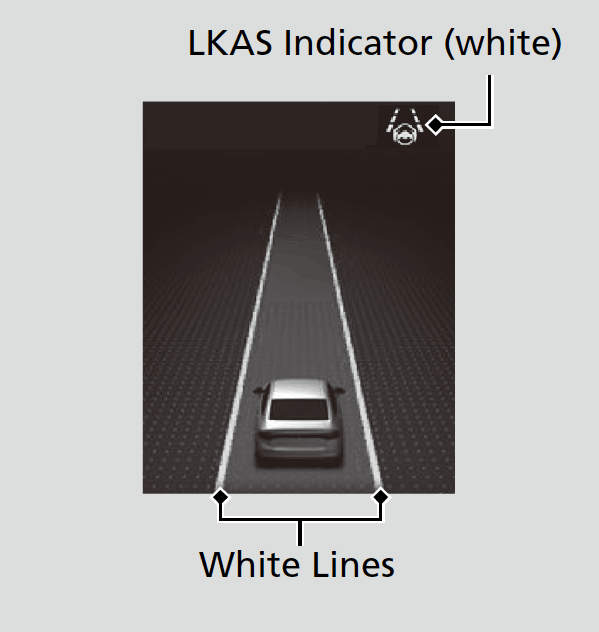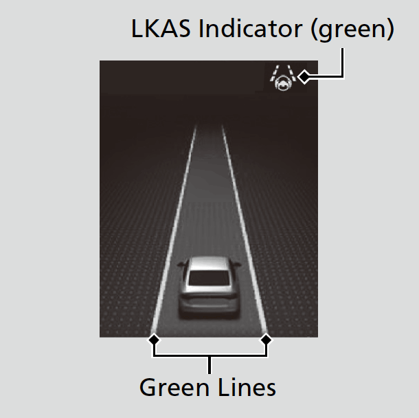 - The LKAS indicator changes from white to green, and white lines change to green once the system starts operating after detecting the left and right lane markings.