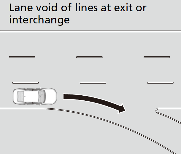 In the following cases, traffic lane lines may disappear on the gauge, the beeper may sound, and the LKAS may be automatically canceled: