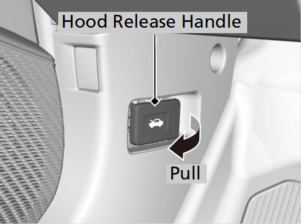2. Pull the hood release handle under the driver’s side lower corner of the dashboard.