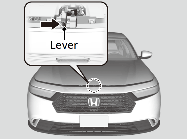 1. Push the hood latch lever (located under the front edge of the hood to the center) to the side and raise the hood. Once you have raised the hood slightly, you can release the lever.