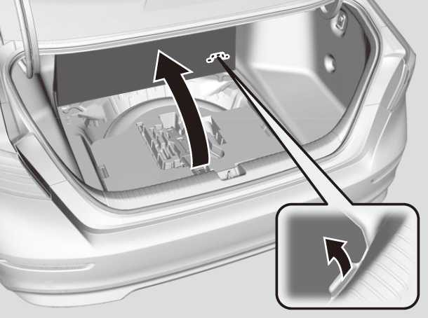 3. Securely store the jack, wheel nut wrench, and jack handle bar back in the tool case.
