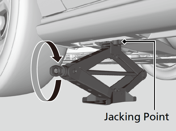 1. Place the jack under the jacking point closest to the tire to be changed.